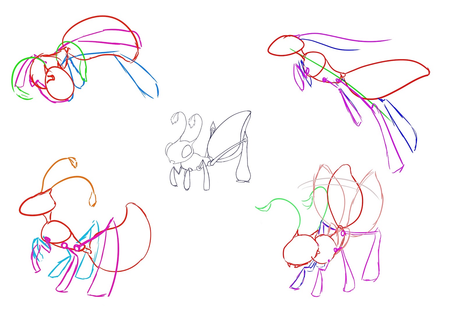 For the hand in today we needed to have an expression and pose chart for our bug, So here is the rough version of them.